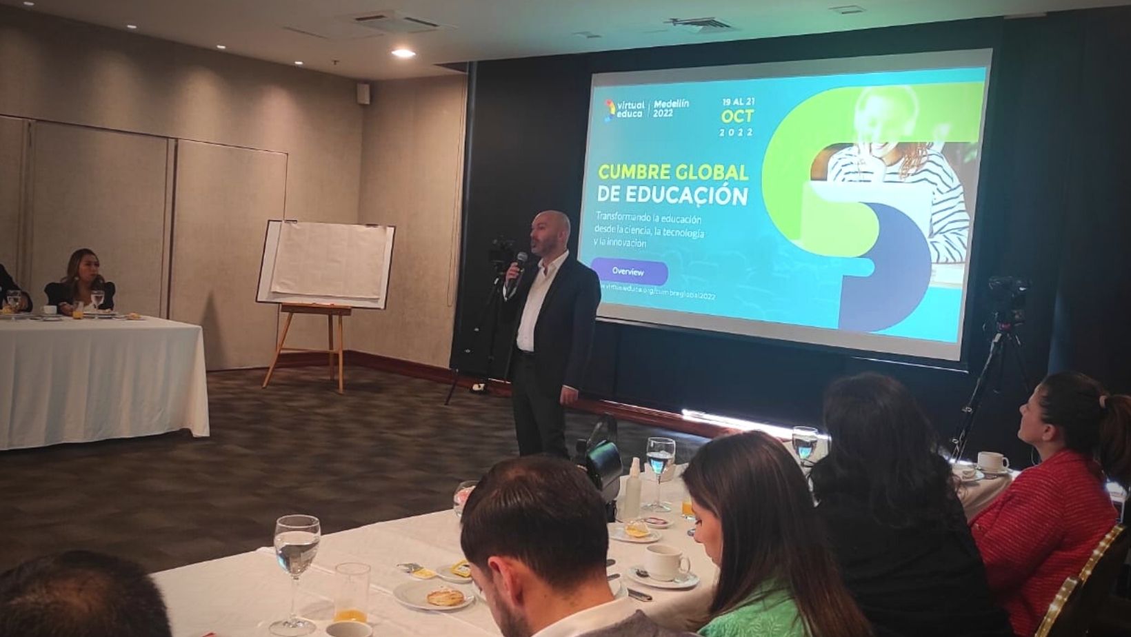 El director ejecutivo de Virtual Educa, Adelino Sousa; la secretaria de Educación de Medellín, Alexandra Agudelo; y el director de Promedellín, Diego Romero; presentaron a destacados empresarios y directivos de instituciones de Educación Superior de Bogotá los detalles de la Cumbre Global de Educación Virtual Educa 2022 que se celebrará del 19 al 21 de octubre en Medellín.