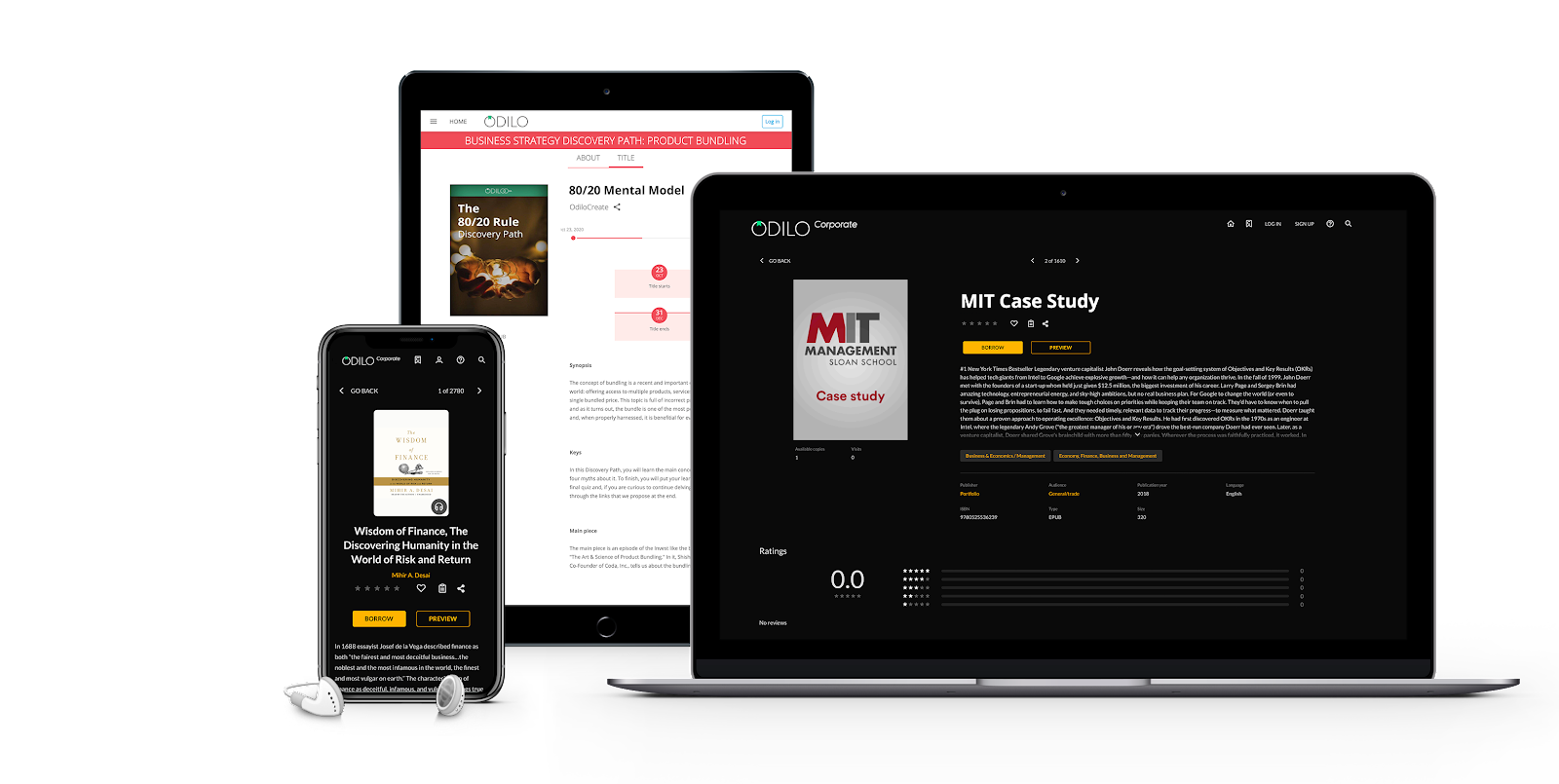 ODILO ha creado una nueva categoría en el mercado de la educación: los Ecosistemas de Aprendizaje Ilimitado. La empresa permite a cualquier organización crear sus propios ecosistemas de aprendizaje totalmente personalizados, y ofrecer a sus usuarios un acceso ilimitado al mayor catálogo de contenidos educativos del mundo. Así mismo, generar todo tipo de experiencias de aprendizaje sin restricciones y, mediante el uso de la Inteligencia Artificial, construir rutas y experiencias de aprendizaje únicas tanto para las organizaciones como para los usuarios.