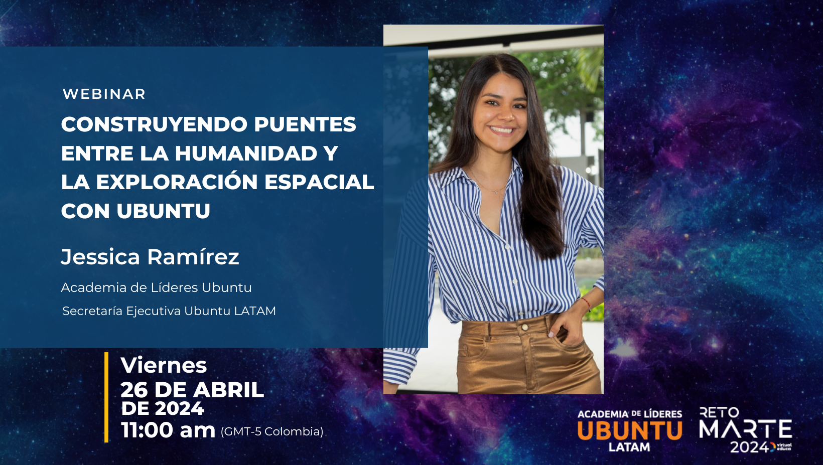Este webinar reflexionará sobre esos nuevos roles y sobre cómo construir puentes entre la humanidad y la exploración del espacio. Jessica Ramírez, miembro de la Secretaría Ejecutiva de la Academia de Líderes Ubuntu, guiará esta conversación en el cual generará interrogantes necesarios para la discusión. La conferencia hace parte del ciclo de sesiones temáticas en línea realizadas en Reto Marte 2024, la iniciativa de Virtual Educa para la educación aeroespacial de jóvenes de la región.