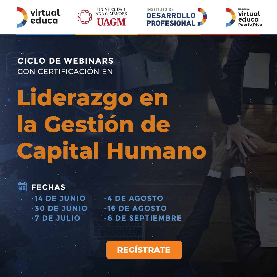 Virtual Educa, a través de la Fundación Virtual Educa Puerto Rico y del Instituto de Desarrollo Profesional (IDP), ofrece una Certificación en Liderazgo en la Gestión del Capital Humano. Para ello, los interesados deberán cursar una serie de webinars que se impartirán a través de la plataforma Zoom, del 14 de junio al 6 de septiembre de 2022.