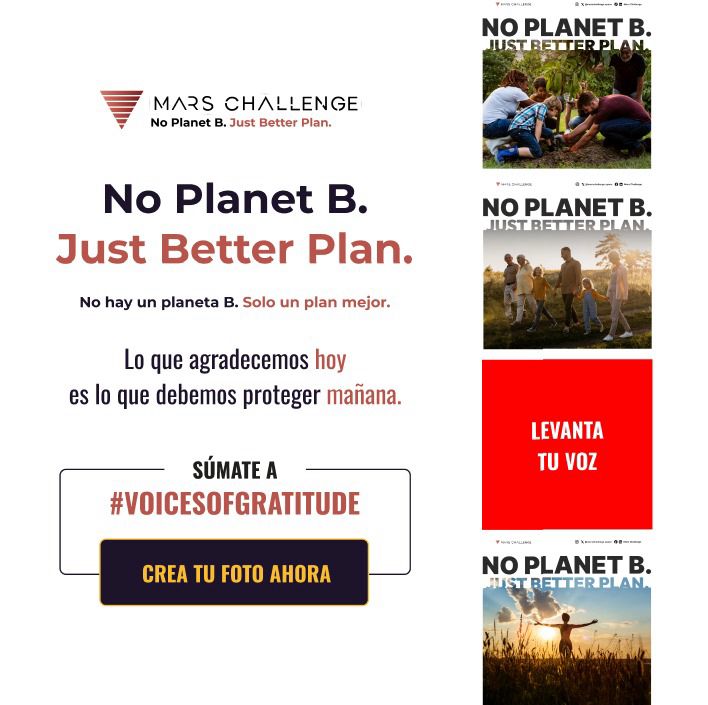 La iniciativa, invita a estudiantes, docentes, jóvenes, líderes y ciudadanos a compartir una fotografía personal con el mensaje “Today I am grateful for…” y publicarla en redes sociales con los hashtags #VoicesOfGratitude y #NoPlanetBJustBetterPlan.